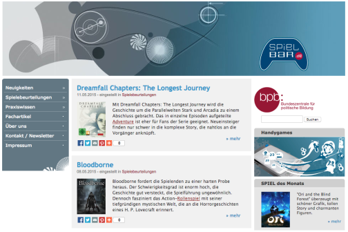 Das Angebot der Bundeszentrale für politische Bildung bietet u.a.Rezensionen zu aktuellen Computerspielen und Apps. Die ausführlichen Besprechungen bestehen meistens aus subjektiven Spielbeschreibungen und weiteren objektiven Angaben, wie z.B. Altersempfehlungen. Die Beiträge sind leider nicht so gut recherchierbar wie in der DJI-Datenbank und es werden auch Spiele für ältere Jugendliche besprochen. So findet man beispielsweise den ab-18-Egoshooter neben dem niedlichen Puzzlespiel für Vierjährige. Außerdem gibt es auch noch eine große Anzahl an umfangreichen Fachartikeln und Praxistipps rund um das Thema Medienpädagogik, die auch für Eltern interessant sind.