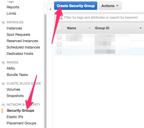 Jetzt müssen wir den Server noch erreichbar machen. Zum einen per SSH um ihn zu administrieren, als auch über den Minecraft-Port 25565, damit alle darauf zugreifen können. Dazu legen wir eine neue "Security Group" an.