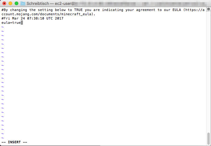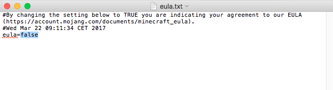 Die Datei "eula.txt" mit Doppelklick öffnen und den Eintrag "eula=false" abändern in "eula=true". Die Datei speichern.