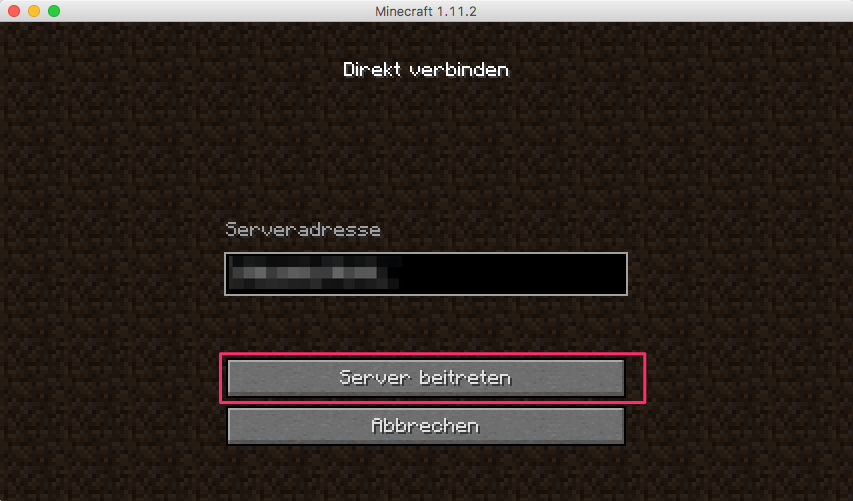 Jetzt die IP-Adresse des Servers eingeben und auf "Server beitreten" klicken.