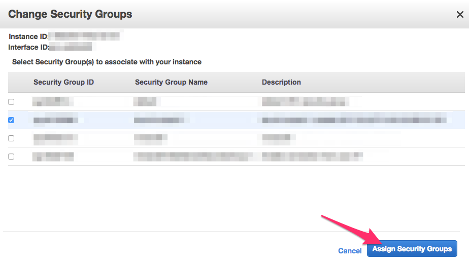 In der Instance-Übersicht jetzt mit der rechten Maustaste auf den Server klicken und "Networking -> Change Security Group" auswählen.