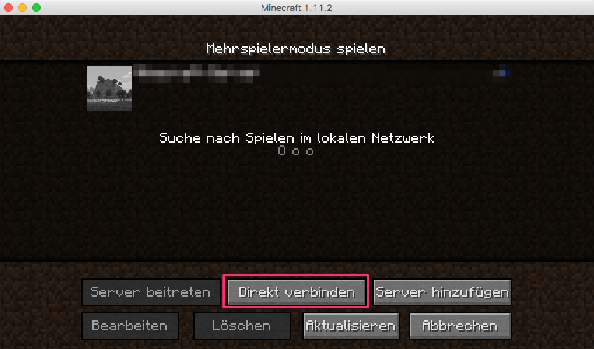 Mit dieser IP-Adresse können sich jetzt alle lokalen Rechner im lokalen Netz mit dem Server verbinden. In Minecraft klickt man auf "Mehrspieler".