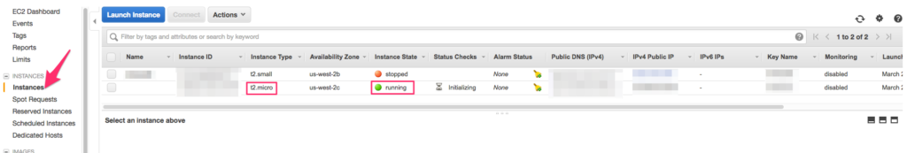 Der Server startet jetzt und irgendwann steht in der Instance-Übersicht ungefähr folgendes.