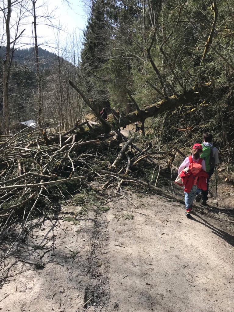 Wir drehen also um und biegen nach kurzer Zeit ab auf den Forstweg Richtung Alpbachtal. Den laufen wir dann noch mal eine gute Stunde entlang und sind schließlich wieder am Bahnhofsparkplatz von Tegernsee.