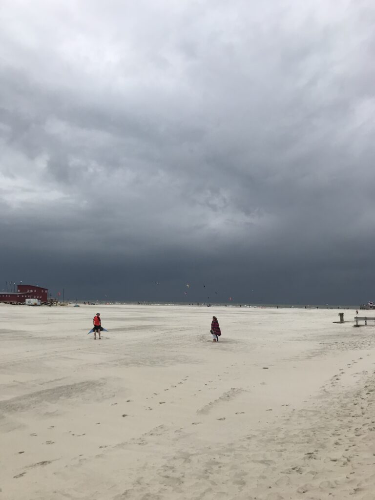Von Tönning mit der Bummelbahn nach St. Peter-Ording. Am ewig großen Strand rumlaufen und Spontan-Gewitterwolken ausweichen. Regenschauer vs. Bielinski: 0:6. Der Wind weht wirklich sehr stark. Diesmal seitlich.