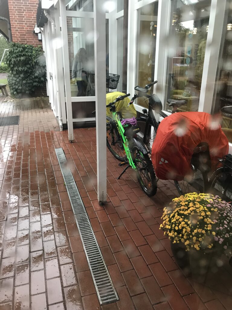 Das Problem bei Fahrradtouren ist ja immer, dass man meistens nur 1-2 Nächte bleibt. Ferienwohnungen fallen da meistens schon raus, da man die immer eine ganze Woche buchen muss. Hotelzimmer sind zu viert auf Dauer meistens recht teuer, weil man als Familie oft zwei Zimmer nehmen muss und Familienzimmer noch nicht so verbreitet sind. Bei airbnb haben wir dieses mal auch nichts direkt am Weg gefunden. Deshalb buchten wir ziemlich oft Jugendherbergen. Das Jugendherbergsnetz ist an der Küste ziemlich gut ausgebaut. Man findet eigentlich alle 30-40 Kilometer eine Übernachtungsmöglichkeit.