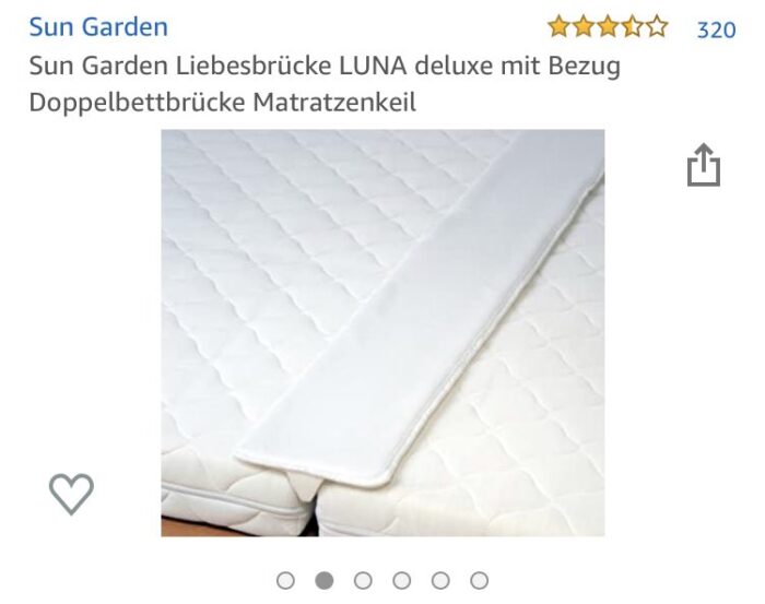 Zwischen den Jahren wieder was gelernt: Es gibt einen Überbrückungsflunsch für zwei Matratzen. Man nennt ihn wahlweise „Liebesbrücke“ oder „Ritzenkeil“ und er soll wohl verhindern, dass was reinrutscht. Da fällt mir jetzt auch kein guter Witz mehr dazu ein. Außer vielleicht: Ich hoffe Ihr seid gut reingerutscht! 🥳