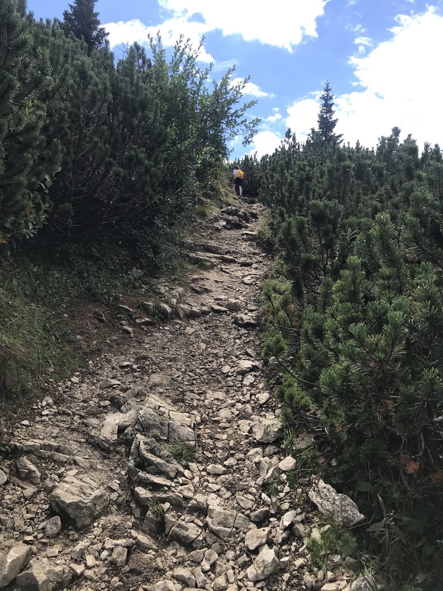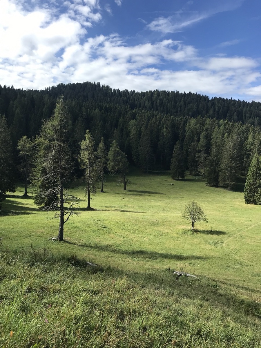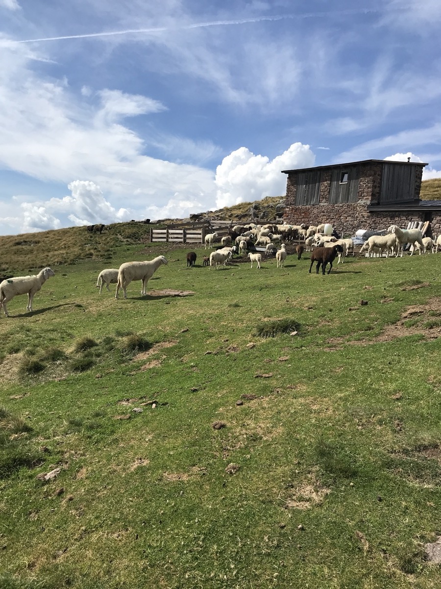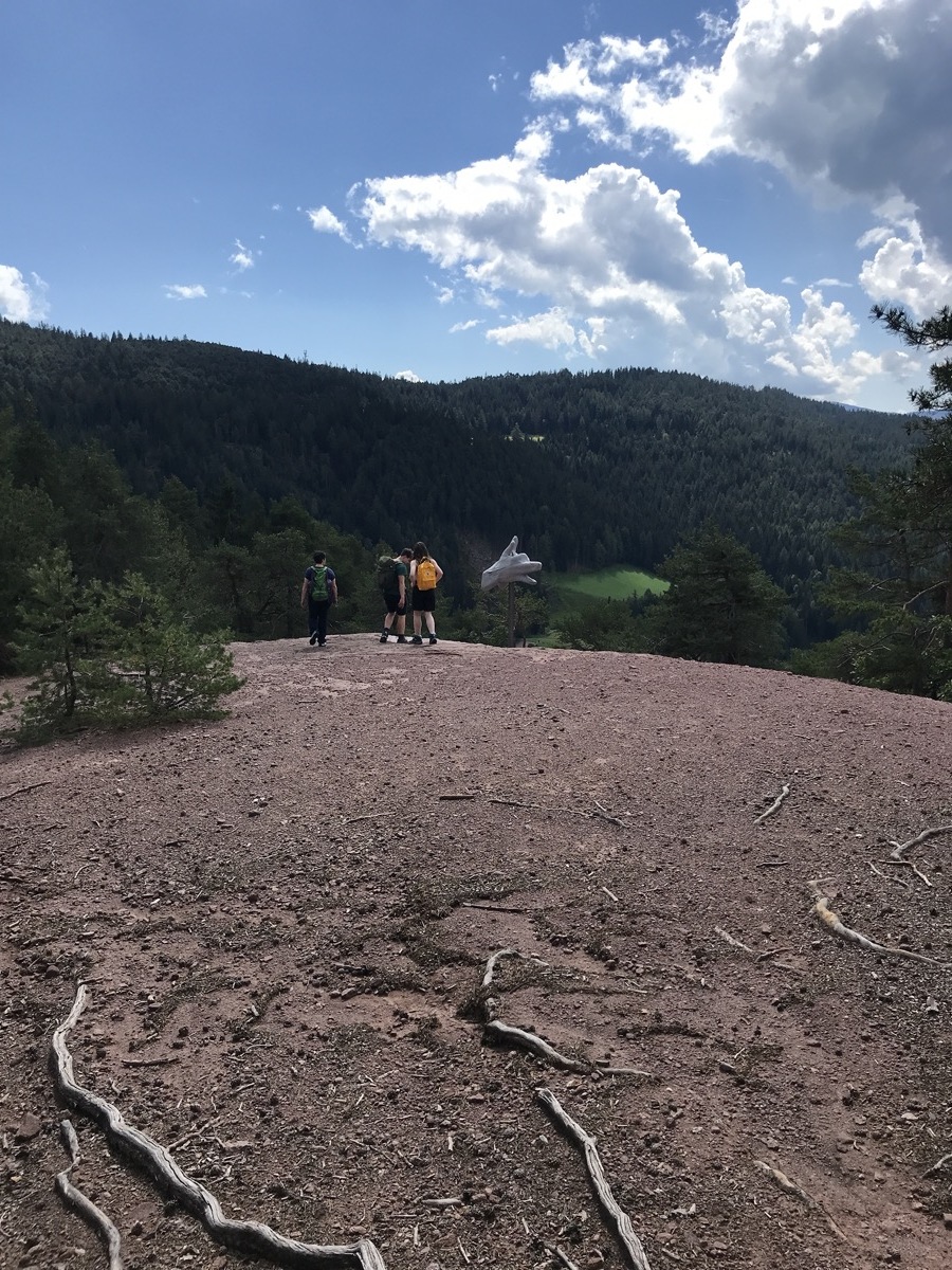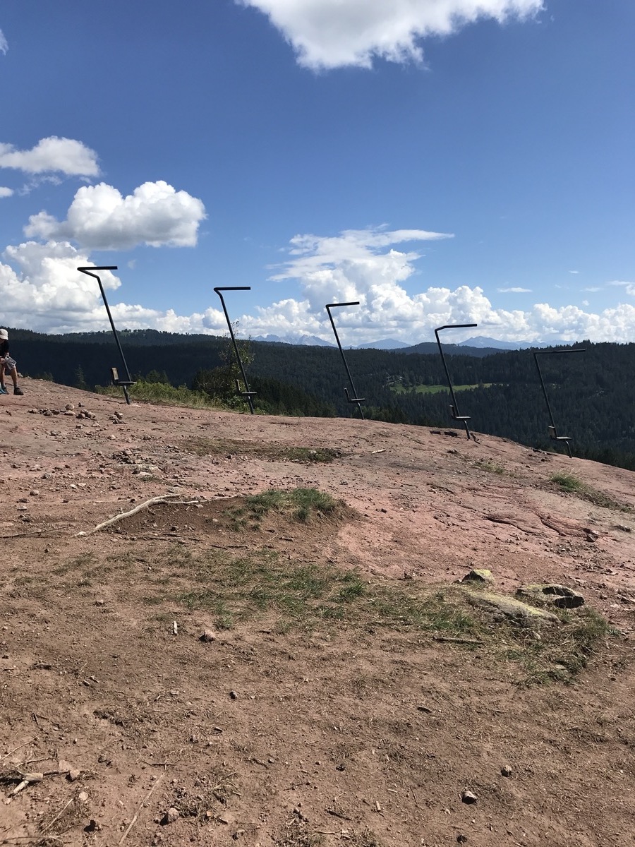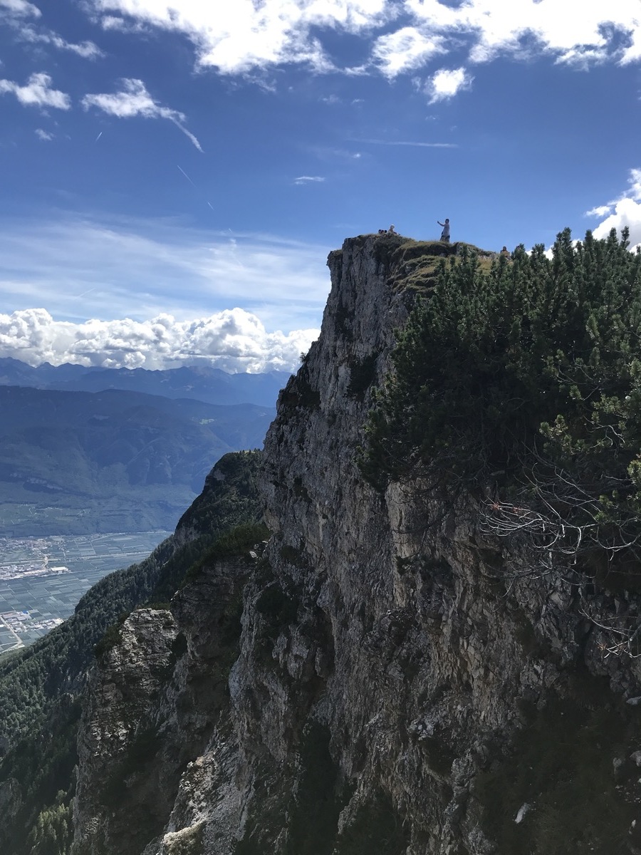 Das Rittner Horn erreicht man mit einem gut abgestimmten ÖPNV-Mix. Zuerst mit dem Bus zur Talstation der Rittner Seilbahn, die in unmittelbarer Nähe zum Bahnhof liegt. Hoch aufs Plateau und ab in die Schmalspurbahn bis Endhaltestelle Klobenstein, weiter mit dem Bus zur Talstation der Seilbahn Rittner Horn. Bis hierhin alles im WinePass enthalten. Die letzte Seilbahn kostet dann extra. Oben am Berg kann man dann entweder sehr direkt und einfach bis zum Gipfel laufen (ca. eine Stunde). Wir entscheiden uns für einen Teil der Südtiroler Himmelstour. Die ist sehr hübsch, es ist wenig los, aber dafür ist es, v.a. im letzten Abschnitt ganz schön steil. Der Ausblick entschädigt aber alles.