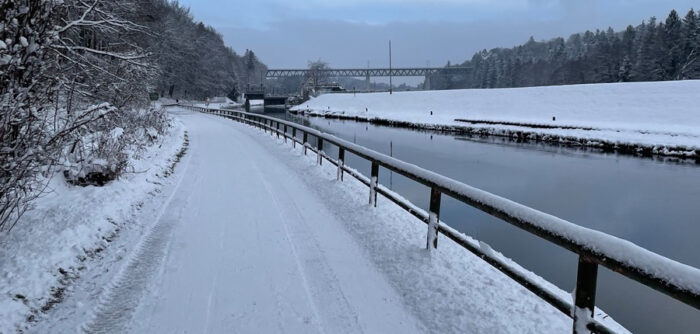 In Pullach geht es in der Ortsmitte über einen Fußweg direkt runter zur Isar und von da aus ist es dann recht einfach. Immer der Isar entlang flussabwärts. Es liegt Schnee, es ist schön. Schön ruhig. Wenn man immer weiter läuft stößt man nach knapp zwei Stunden unvermeidlich auf das neue Interimsquartier des in Sanierung befindlichen Gasteigs, das HP8. Das Kulturzentrum hat jeden Tag geöffnet. Es gibt Croissant und Kaffee, anschließend leihen wir in der dort einquartierten Stadtbibliothek noch zwei Reiseführer für den Sommerurlaub aus.