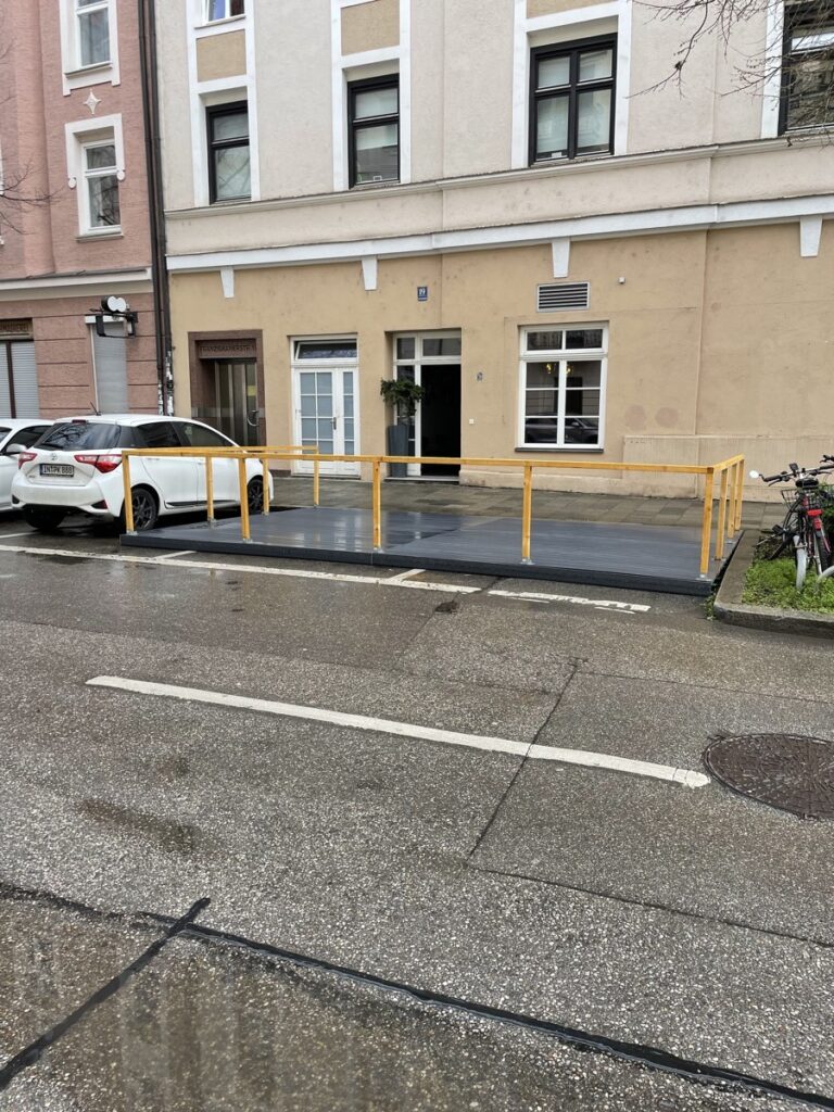 Jedenfalls: Ein schneller Streifzug durch die angrenzenden Stadtviertel zeigt zahlreiche Schanigärten im Aufbau. Da wo sonst 2-3 Autos meistens ziemlich unausgelastet rumstehen, kann man demnächst lauschig sitzen und anstoßen.