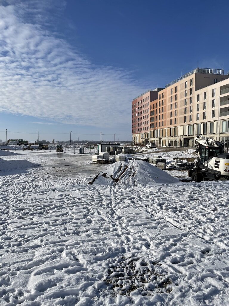 Noch weiter Richtung Norden kommt man zum Quartierszentrum. Es entsteht gerade noch. Neben kleineren Geschäften werden dort auch soziale Einrichtungen wie z.B. die neue Stadtteilbibliothek einziehen.