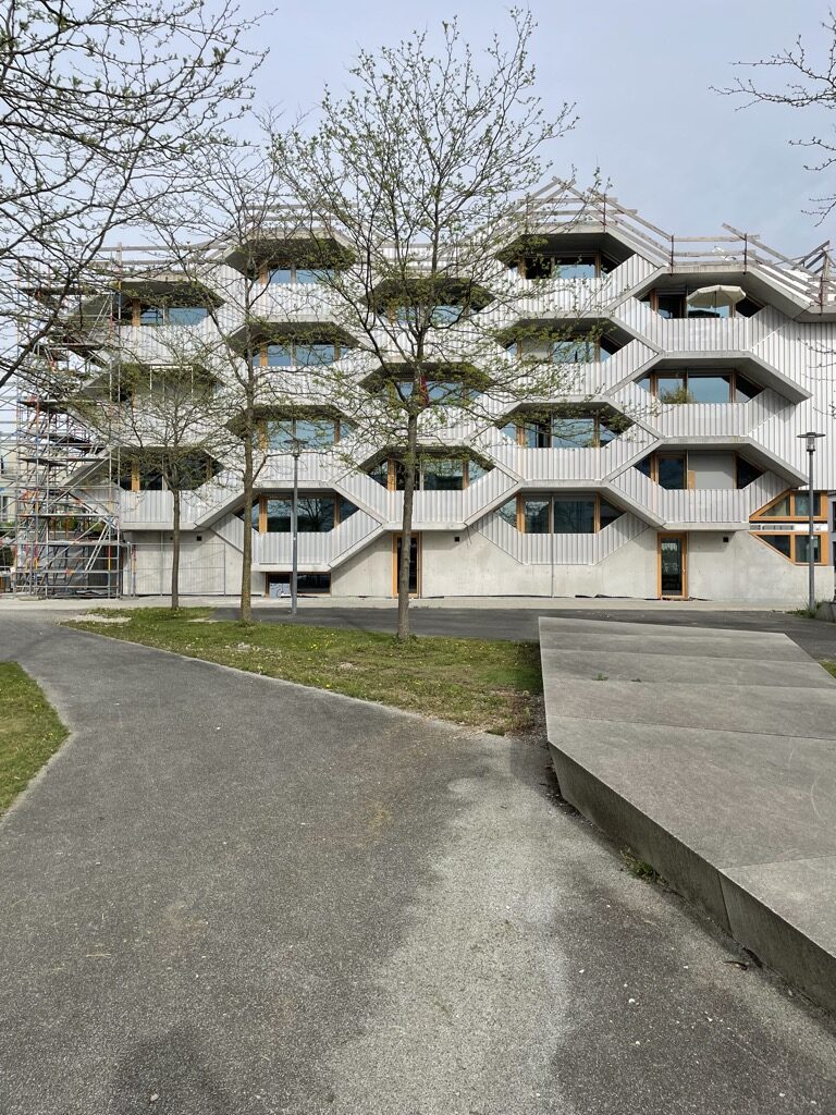 Dann noch zum architektonischen Must-See der Messestadt: Das Wabenhaus. Ich hatte letztes Jahr mal die Möglichkeit, das von innen zu besichtigen. Dort zu Wohnen sicher nicht jedermanns Sache, aber ausprobieren würd ichs mal. Dann müsste ich mich aber von meiner Lieblingsbibliothekarin trennen. Das will ich nicht. Also kein Wabenhaus.