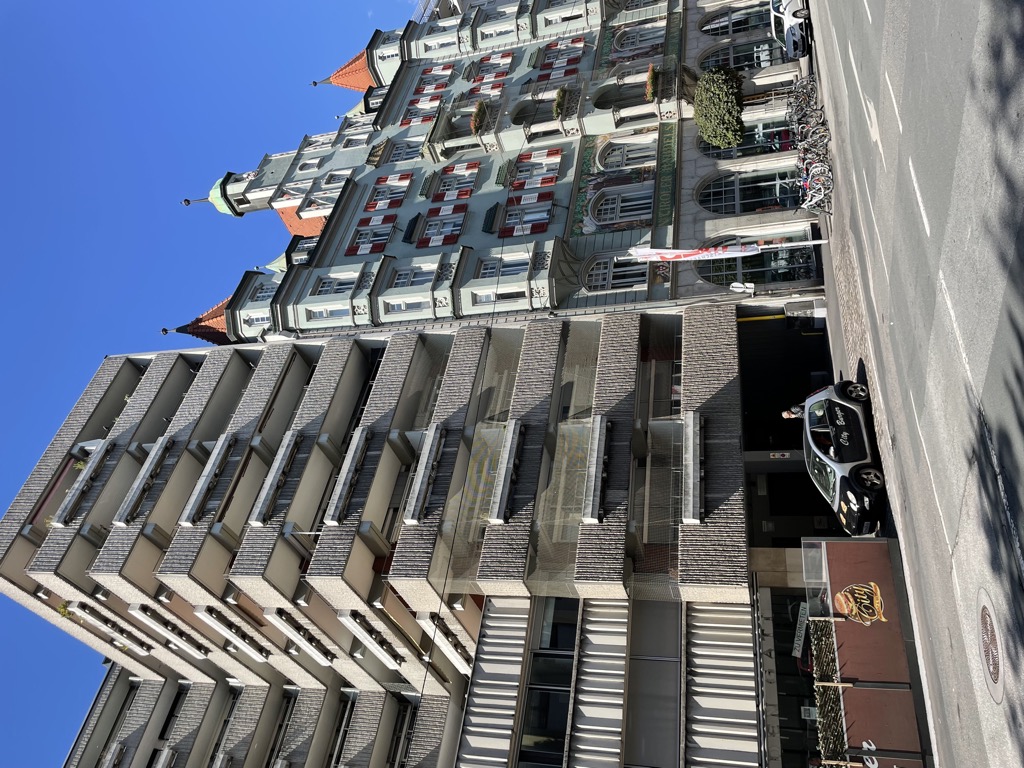 Der erste Morgen führt uns erst mal in die Innsbrucker Stadtbibliothek, Langjährige Blogleser wissen, dass jetzt erst mal ein bisschen Library-Porn-Fotos folgen. Irgendwas fotografierenswertes hat jede Bibliothek. Die Innsbrucker-Stadtbibliothek will aber lieber nicht fotografiert werden von innen. Das wird direkt am Eingang deutlich zum Ausdruck gebracht und aus langjähriger Lebenserfahrung weiß ich natürlich, dass man einer Bibliothekarin nicht widerspricht. Schade. Die Bibliothek ist ziemlich neu und modern. Kann sich sehen lassen, will aber nicht gesehen werden. Deshalb nur ein Foto von außen und eins von drinnen nach draußen.