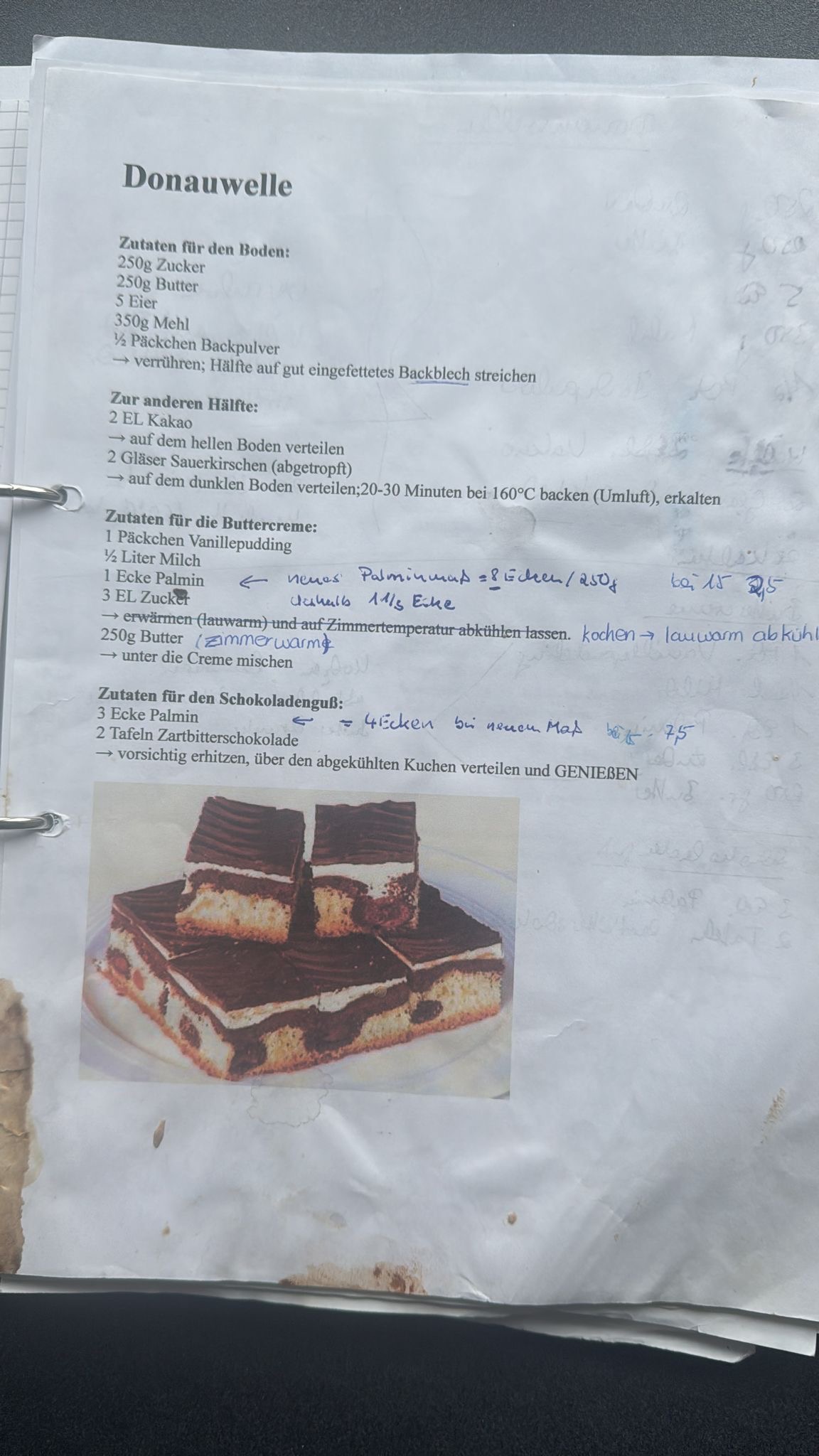 Das Rezeptblatt hat mich an das Donauwellenrezept meiner Mutter erinnert.
