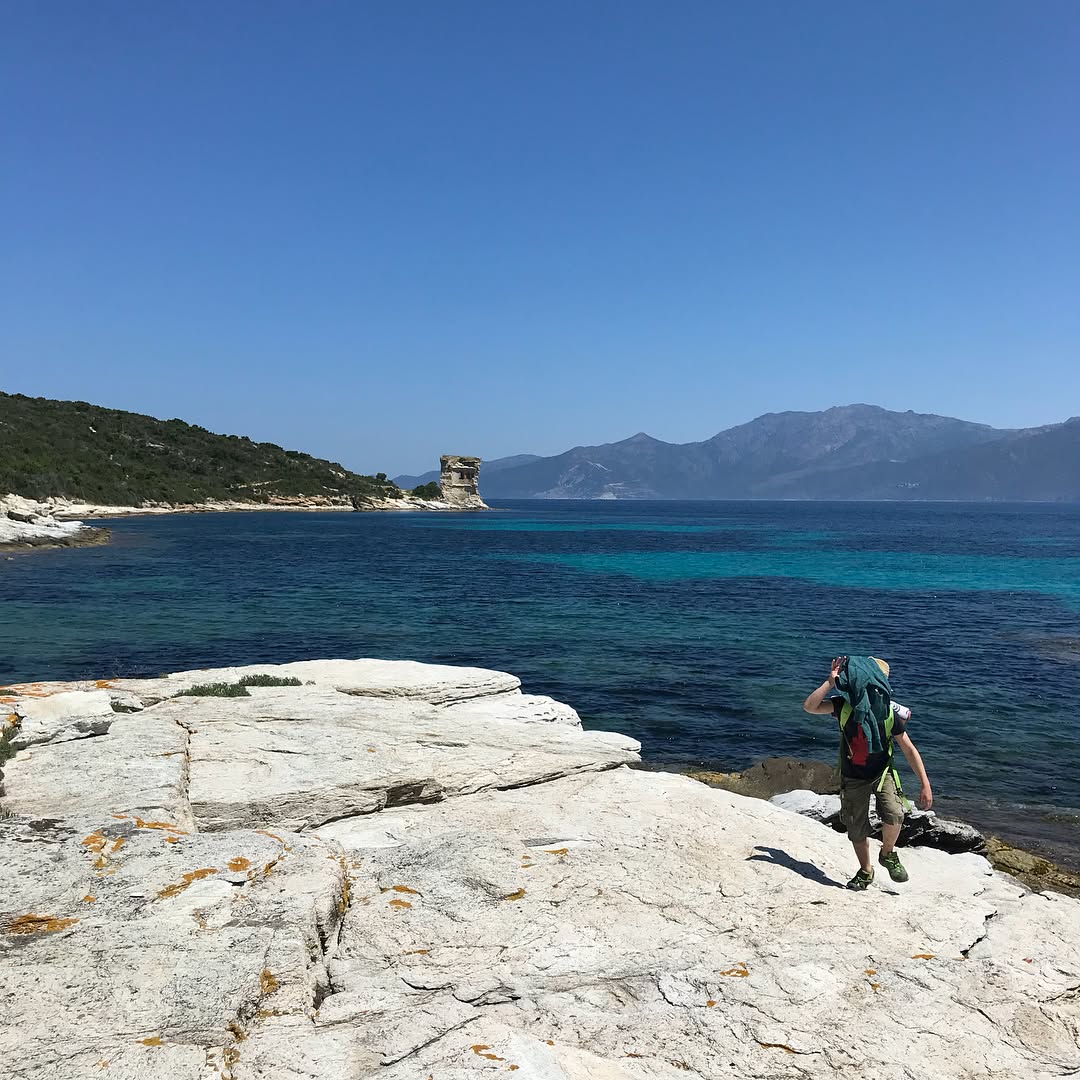Von Saint-Florent fährt man mit dem Boot (erste Fahrt in der Nebensaison um 10:00 mit @le.popeye) in 20 Minuten zum Plage de Lodo. Dort verteilt sich der Bootinhalt. 1/3 geht nach rechts zum Plage de Saleccia, 1/3 bleibt direkt am Strand und 1/3 macht sich auf den Rückweg entlang der Küste nach Saint-Florent. Wir schließen uns dem letzten Drittel an. 14 Kilometer, immer an der pittoresken Küste entlang. Am Wegrand drei größere Sandstrände (an einem hat schon eine Kuhherde ihre Handtücher ausgelegt), unzählige kleinere (Schmuggler/Bade)Buchten, zwei Leuchttürme, eine verfallene Ruine und zwischendurch läuft uns auch noch ein Hund zu. Ja, 5 Freunde, das sind wir ... Teile der Familie trauen sich mehrmals ins türkisfarbene Meer, ich bleibe aus Sicherheitsgründen am Strand und teile mein Schinkensandwich mit dem Hund. Die letzte Bucht vor dem Ziel zieht sich dann doch etwas elendig und wir fallen leicht erschöpft um 19:00 in die Hafenpizzeria von Saint-Florent.