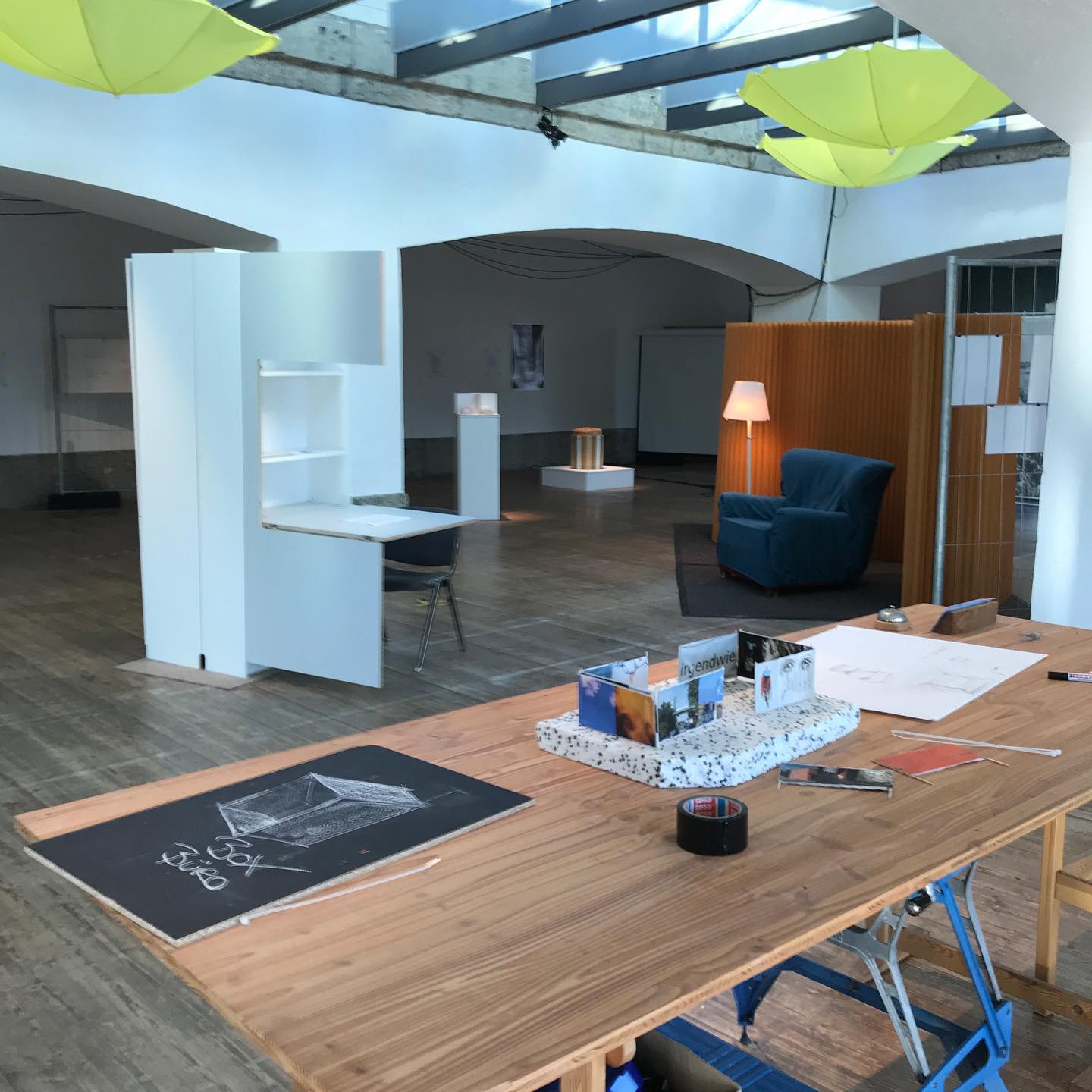 Der Kopfbau in der Messestadt Riem war das Kassengebäude für die Besuchertribüne des ehemaligen Flughafens Riem. Diesen Sommer wurde der Kopfbau zwischengenutzt. Als Nachbarschafts-Café, Popup-Bibliothek und als Raum für Kunst. Gestern, am 31.10.2020, wurde die Zwischennutzung mit einem letzten Cafébetrieb bei herrlichem Sonnenschein beendet. Ich hab die Gelegenheit genutzt und mir die kleine Ausstellung „My little Homeoffice“ angeschaut.