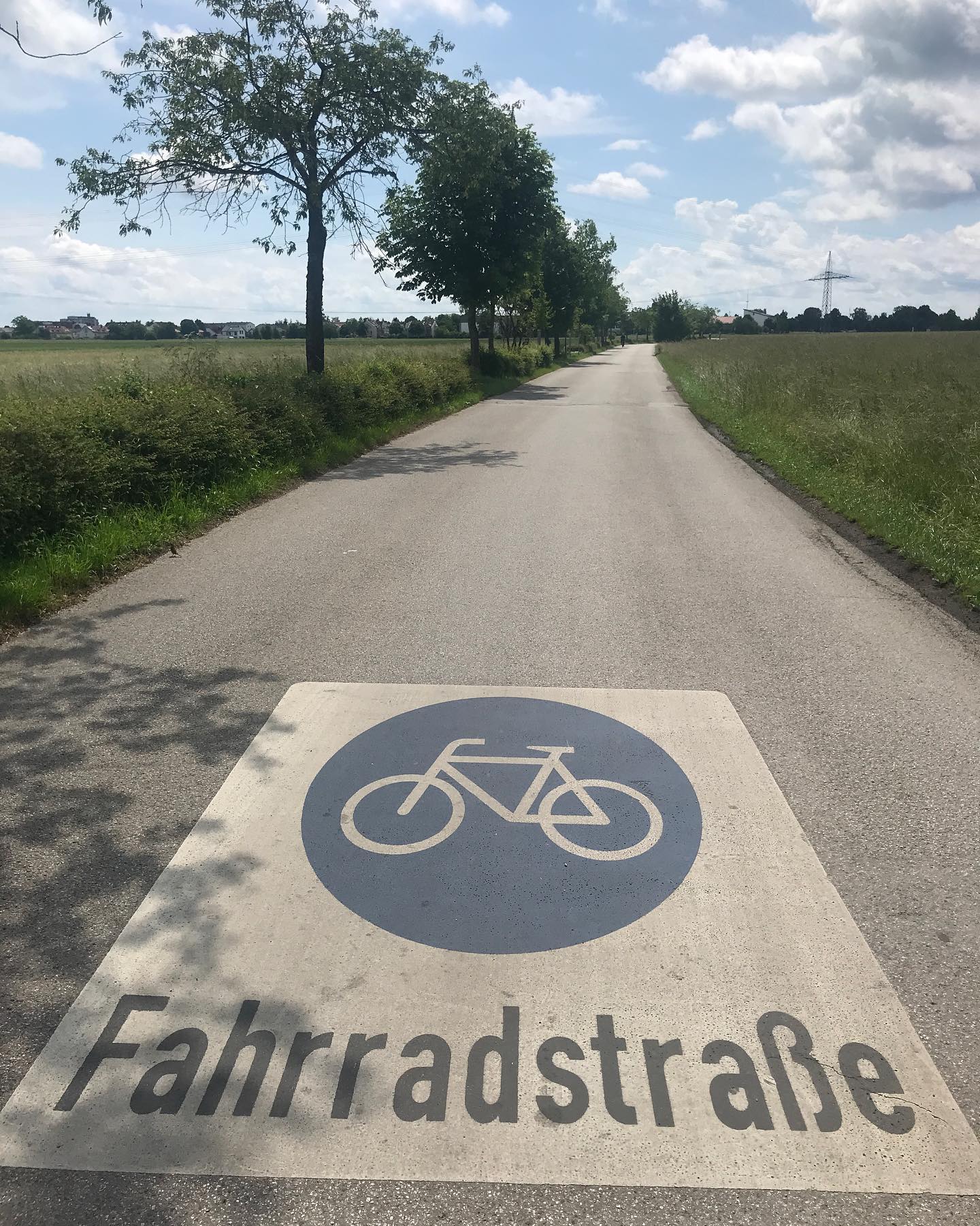Grüner Felder vor Kränen. In Freiham wird gebaut, am Germeringer See lässt man auf der Beinebaumelbank die Beine baumeln. Tour im Blog: 🚴♂️