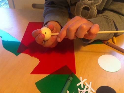 Dass uns das mit dem überall verteilten Klebstoff noch weiter beschäftigen sollte, stellte sich dann bei Bastelidee Nr. 2 heraus, dem Mobile: