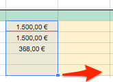 Ist der Januar fertig, markieren Sie alle Felder und ziehen sie die rechte untere Ecke der Markierung nach rechts, bis alle weiteren Monate mit den Daten ausgefüllt sind.