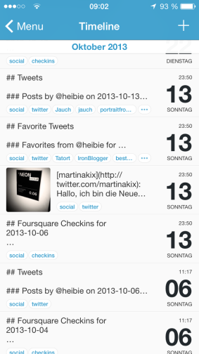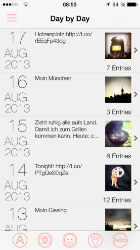 Alle Foursquare-Checkins, Instagram-Bilder und Facebook-Postings in einer chronologischen Timeline zusammengefasst ergeben ein wunderbares Tagebuch mit dem man z.B. noch mal den letzten Sommerurlaub oder das zurückliegende Jahr Revue passieren lassen kann.