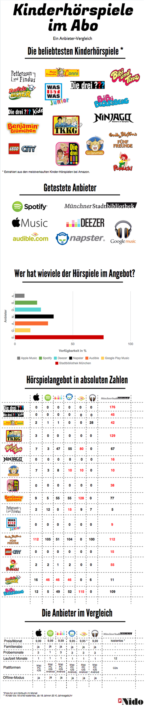 Ausgangslage für den Vergleich ist eine selbsterstellte Top 16-Liste der populärsten Kinderhörspiele, die auf der Liste der meistverkauften Kinderhörspiele bei Amazon beruht.