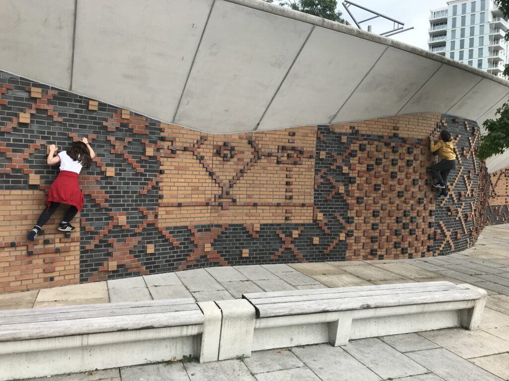 In Hamburg haben wir dann noch einen Nachmittag Zeit und fahren ein bisschen mit dem Fahrrad rum. Richtung Hafencity. Für Hamburger ist das wahrscheinlich ein übles Gentrifizierungsquartier mit überteuerten Preisen. Aber gentrifizierungstechnisch schockt einen Münchner eh nix mehr und die Kinder finden die ganze Uferpromenade parkourtechnisch sehr attraktiv.