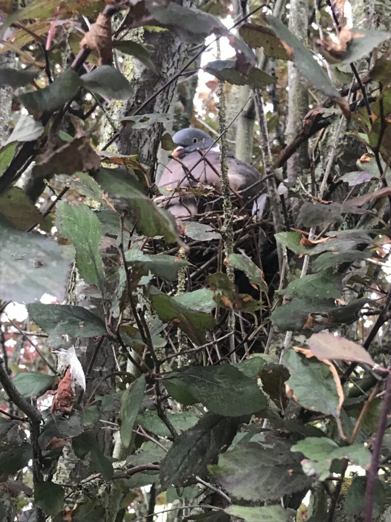 Dann schauen wir einer Taube beim Brüten zu, während sie uns beim Kuchenessen zuschaut.