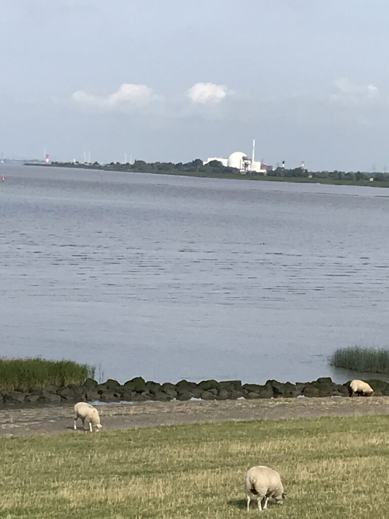 Gleich von Glückstadt aus hat man schon perfekten Fernblick auf das erste Tour-Highlight: Das AKW Brokdorf (nach dem AKW Isar 1 schon das zweite AKW, das wir uns erradelt haben)