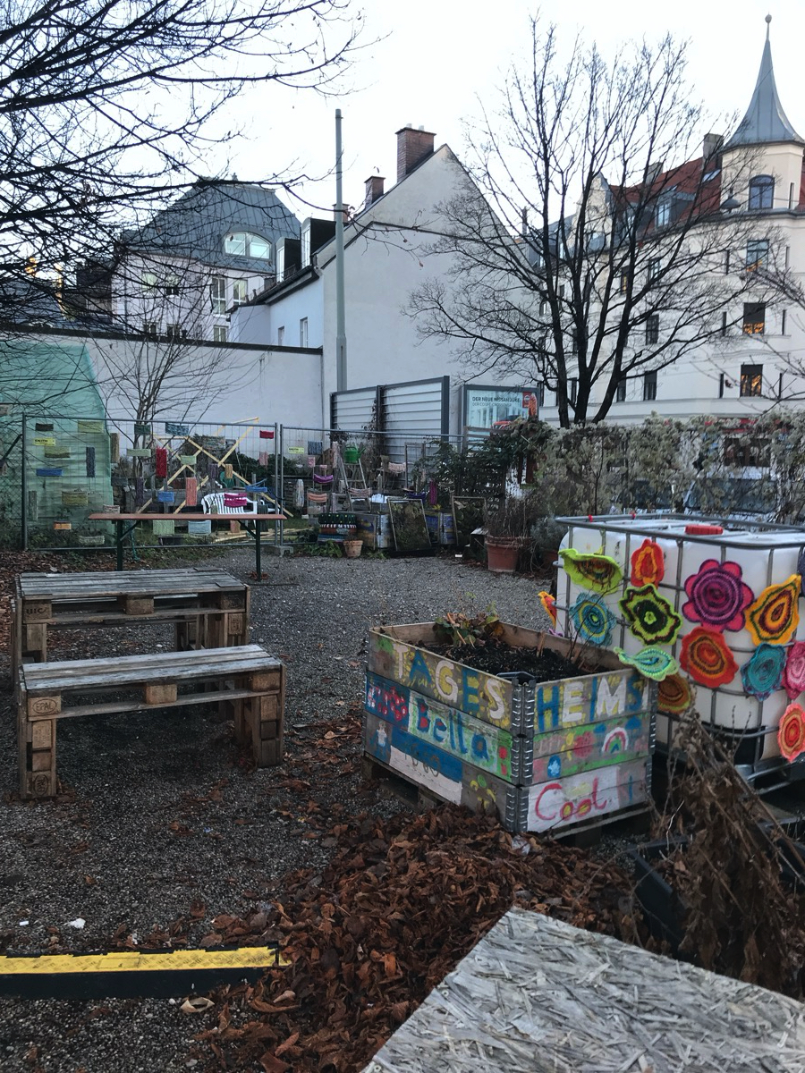 Auf dem Gelände war früher ein Gebrauchtwagenhändler. Vor ein paar Jahren wurde dort begonnen so einen bürgerbeteiligten Ort zu schaffen. Eingequetscht zwischen zwei großen Straßen ist ein schöner, urbaner Ort entstanden auf dem regelmäßig Veranstaltungen stattfinden, kleine Gärten entstehen und man ansonsten auch einfach nur mal abhängen kann. Da ich da nicht direkt wohne, weiß ich nicht genau, wie das angenommen wird, aber so wie der Platz sich entwickelt denke ich mal ganz gut.