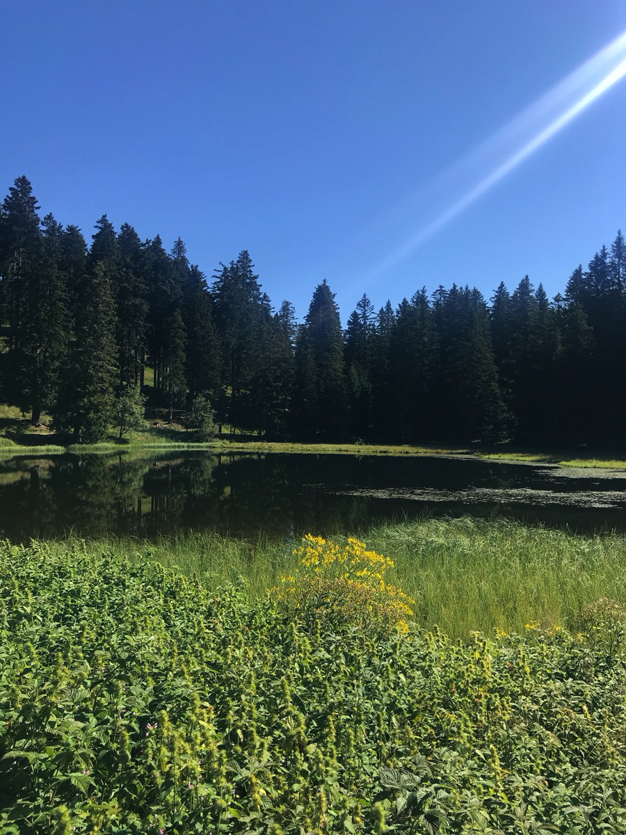 Dann geht es weiter zur „Schwarzen Lacke“. Der Name lässt vermuten, dass die Einheimischen da ihr Altöl entsorgen. Ist aber nur ein netter Moorsee.