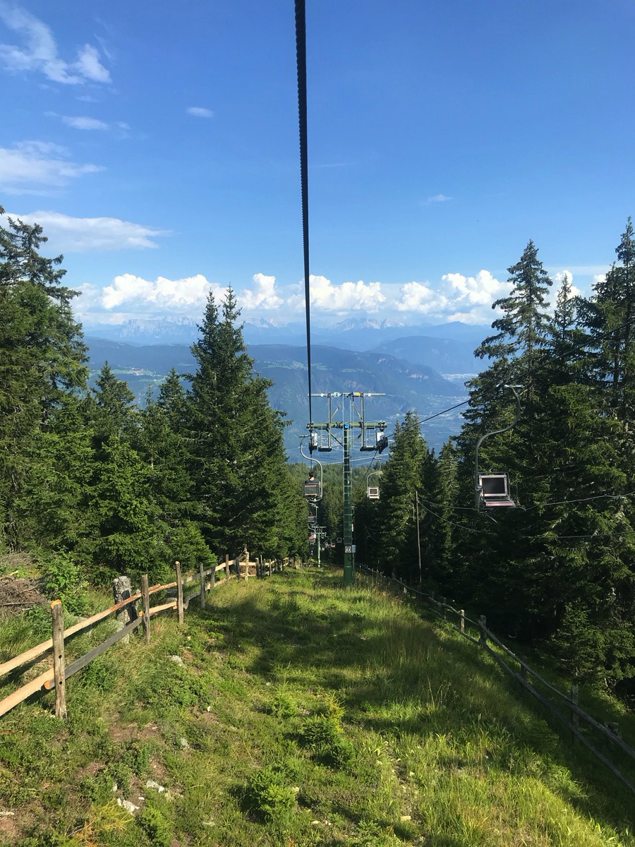 Mit der Gondel fahren wir von der Talstation in Lana nach oben. Das eigentliche Highlight ist dann aber der darauffolgende Einer-Sessellift.