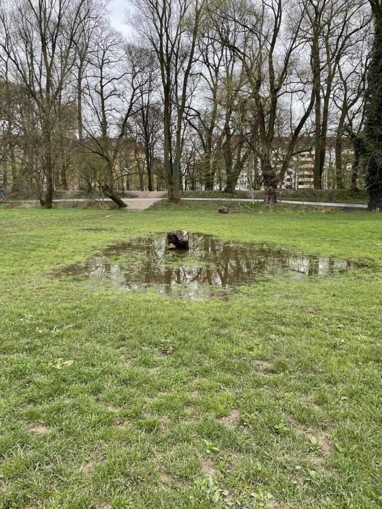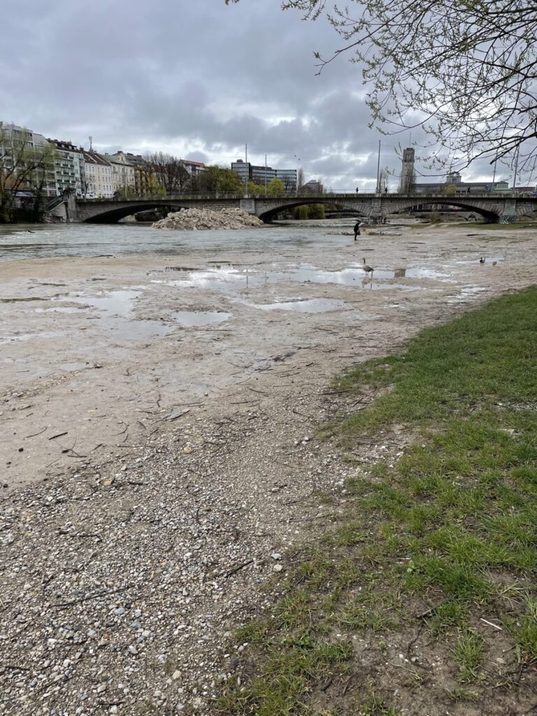 Das am 13.4. vermutete Baldhochwasser lässt immer noch auf sich warten. Überrascht mich ein bisschen, weil es gefühlt die letzten drei Tage durchgeregnet hat. Aber vielleicht täuscht da mein Eindruck auch. Oder es hat weiter oben - in den Bergen - nicht so viel geregnet. Oder es hat weiter oben - in den Bergen - geregnet und es dauert aber noch zwei Tage, bis das Wasser weiter unten - in München - ankommt. Ich bin auch nur ein einfacher Hobbymeteorologe, dem es manchmal im Bein zwickt, wenn es frostig wird. Die Kleingärtnerinnen am Isarseitenarmkanal nahe Zoo haben jedenfalls schon mal die Sandsäcke rausgeholt.