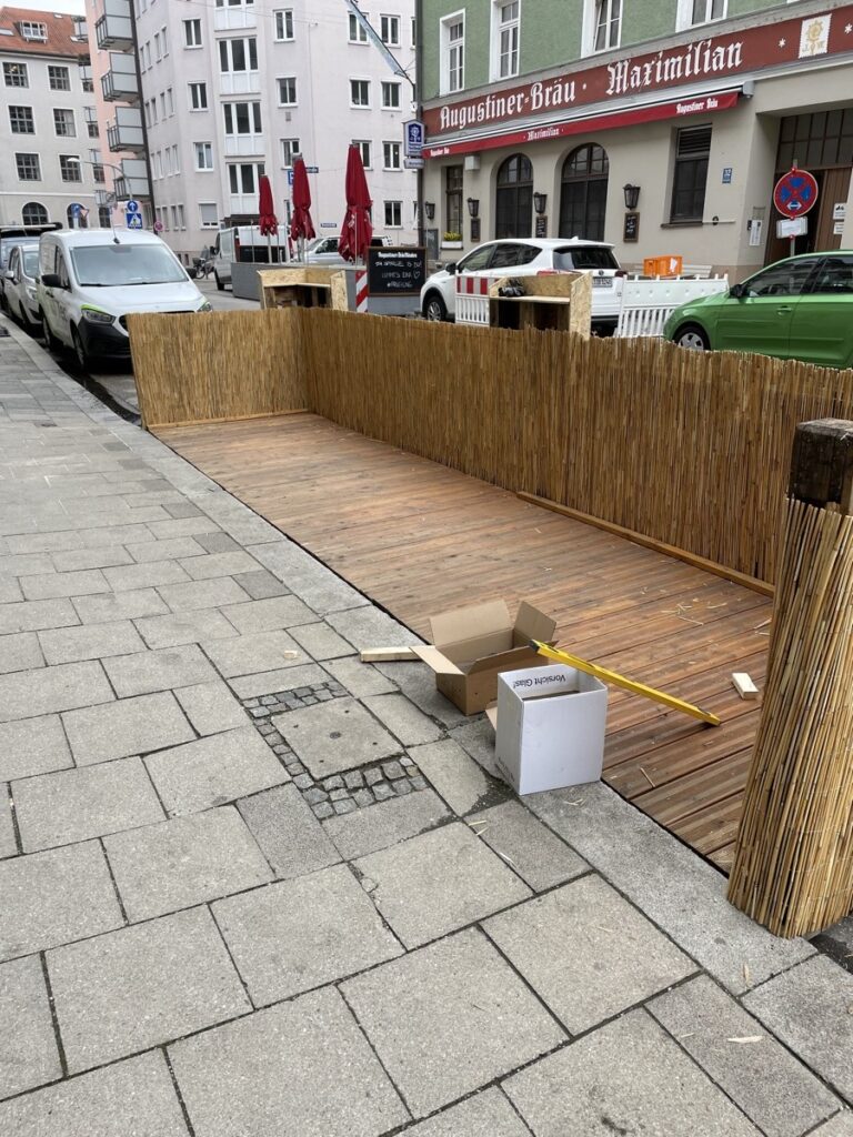Jedenfalls: Ein schneller Streifzug durch die angrenzenden Stadtviertel zeigt zahlreiche Schanigärten im Aufbau. Da wo sonst 2-3 Autos meistens ziemlich unausgelastet rumstehen, kann man demnächst lauschig sitzen und anstoßen.