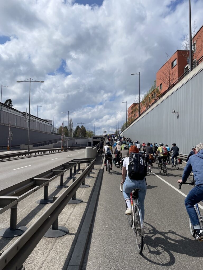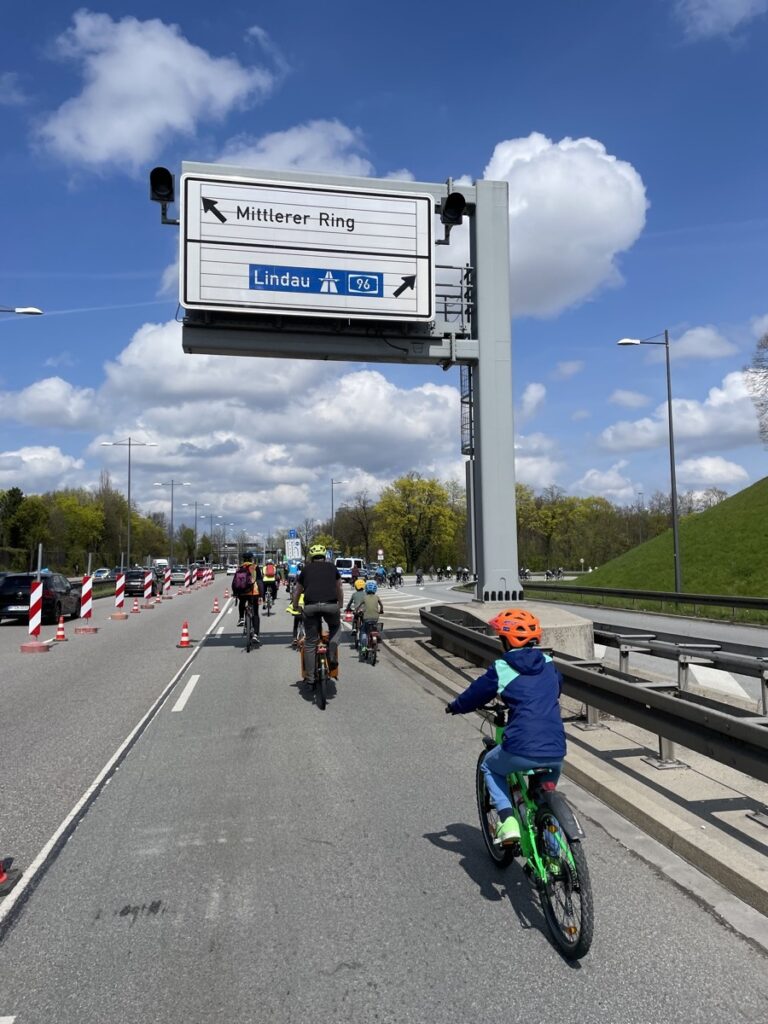 Radsternfahrt. 18.000 Münchner*innen stimmen mit ihren Radlwadeln ab. Für den Radentscheid Bayern und für eine echte Verkehrswende. Wir radeln auf dem Mittleren Ring, durch den Brüdermühltunnel und auf die A96. Wie breit, sicher und holperfrei Verkehrswege sein können. Genial!
