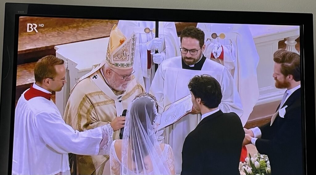 Das sind die Zwei. Sophie-Alexandra Evekink und Ludwig PrinzvonBayern. PrinzvonBayern scheint sein Nachname zu sein. Wir erfahren im Interview, dass sie fleißig Deutsch lernt und schon "Semmel" sagen kann. Er antwortet auf die Frage, auf was er sich bei der Hochzeit am meisten freue: "Wenn es vorbei ist". Als Mensch, der auch nicht gern im Mittelpunkt steht, fühle ich ihn da sehr.
