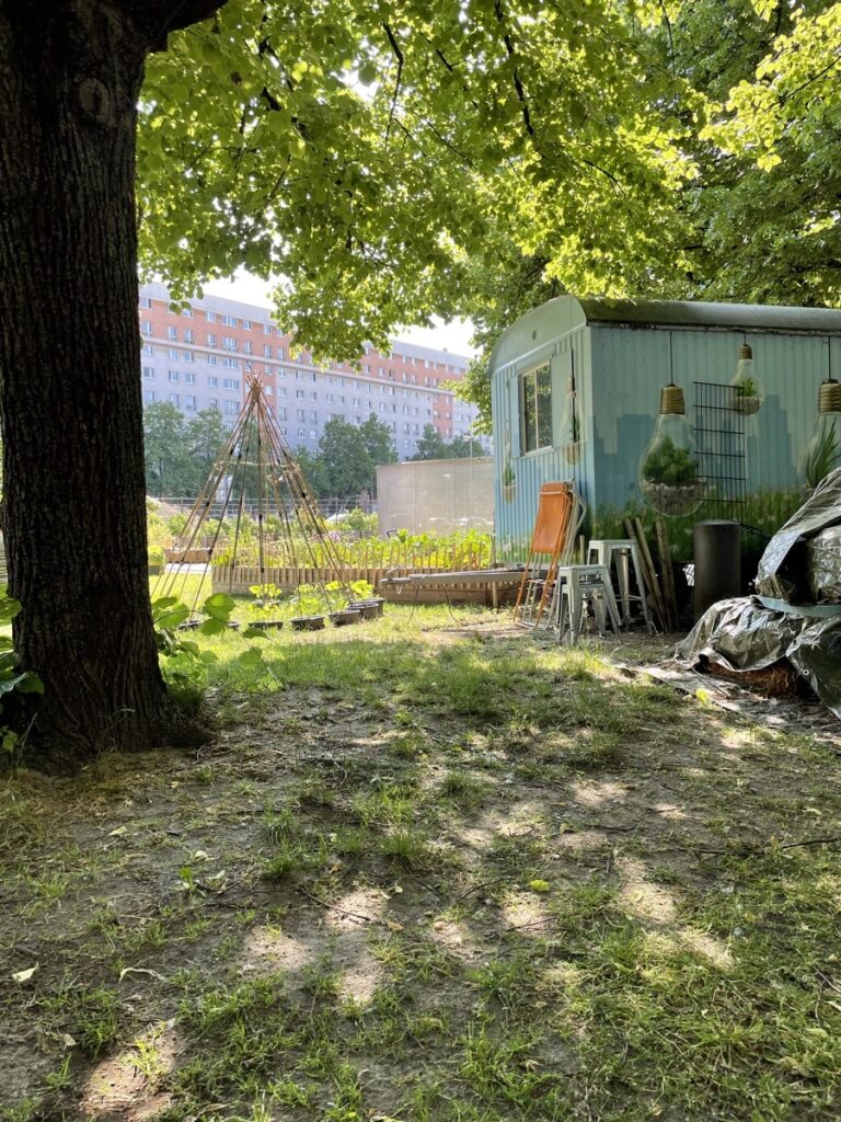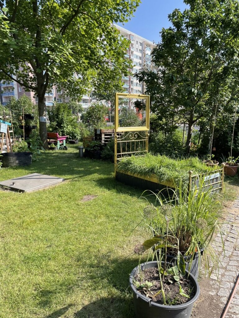 In Hotelnähe stolpere ich zufällig in einen kleinen Stadtgarten rein. Mitten zwischen Beton. Vattenfall hat dort neben seiner Zentrale einen Garten eingerichtet, der für alle offen ist. Keine Ahnung, ob das Greenwashing ist, aber mir kommt es gerade sehr gelegen und ich kann meine Falafel im Liegestuhl mit Blick auf viel Grün essen.