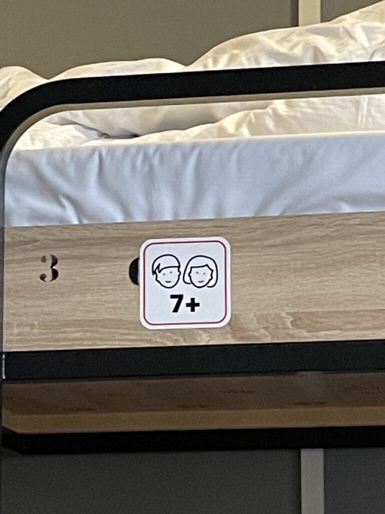 Das sitzt, hindert mich aber nicht daran, gleich im Hotelzimmer noch darauf hinzuweisen, dass das Stockbett - entgegen dem angebrachten Hinweisschild - oben ja wohl schon mit zwei Kindern ziemlich gut ausgelastet sei.