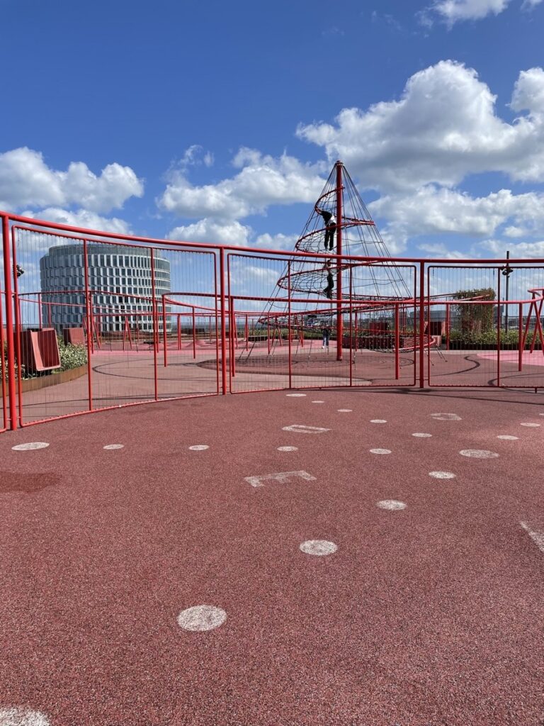 Frisch gestärkt dann zum eigentlichen Ziel der Fahrt. Ein Parkhaus. Ernsthaft? Ja, aber es ist schon ein ausergewöhnliches Parkhaus. Auf dem Dach des Konditaget Lüders befindet sich eine öffentlicher Fitness-Parkours, ein Spielplatz und grundsätzlich hat man eine schöne Aussicht über die Stadt.