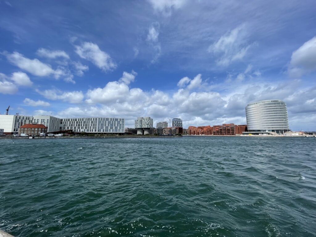Von dort aus kann man ans andere Ufer schauen auf CopenHill, ein Kraftwerk, auf dem eine Skipiste angelegt wurde. Da fahren wir gleich noch rüber.