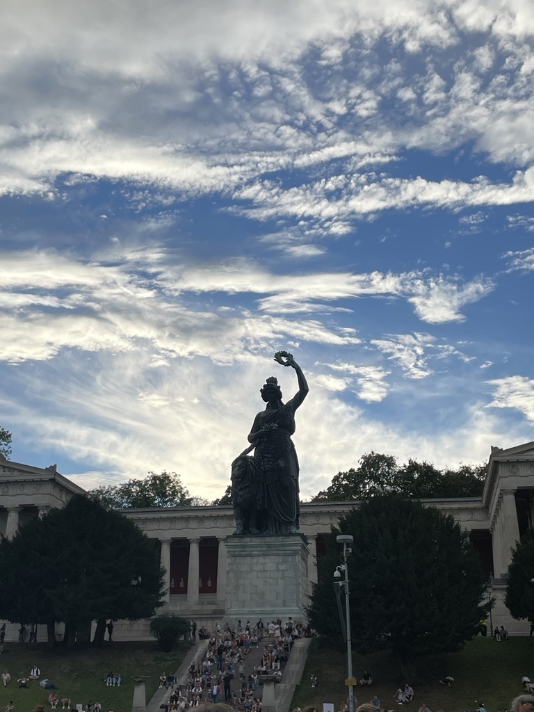 Auf der Wiesn ein bisschen Zeit unterhalb der Bavaria zum Leute beobachten. Ich sichte Wildleder-Chucks zur Tracht, aber keine Haferl-Crocs. Dabei wäre das so naheliegend.