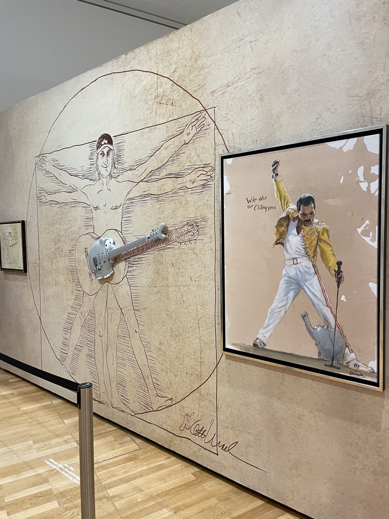 In der Ausstellung gibt es auch ein paar kleinere Bereiche, wo alte Sketche laufen und auf Ottos Curriculum vitae zurückgeblickt wird, aber der größte Teil besteht aus seinen neueren Gemälden, die er vor allem in den letzten 10 bis 15 Jahren gemalt hat. Das Prinzip ist fast immer gleich: in ein bekanntes Werk der Kunstgeschichte ein paar Ottifanten reinmalen. Irgendwie aber so originell und auch wirklich gekonnt gemacht, dass es mir überhaupt nicht langweilig wird. Schön.