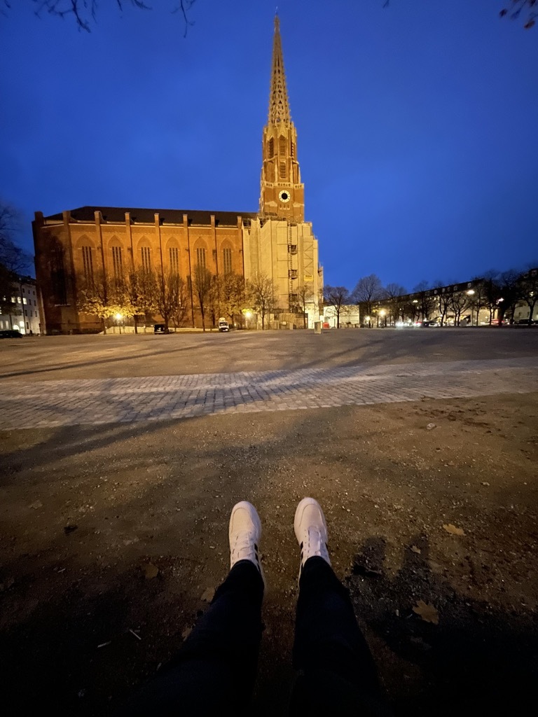 Danach dann kurze Pause vor der zweiten Abholstation. Ein bisschen sitzen und mit den brandneuen weißen Schuhen den kompletten Platz beleuchten. Diesen Zustand werden die Teile nie wieder haben. Ab jetzt geht es abwärts. Jeder weitere Tag wird ihnen Glanz nehmen und Alltagsgrau hinzufügen. Bis sie in Rente gehen und von ihren Nachfolgern oder einer KI ersetzt werden. So ist der Kreislauf.