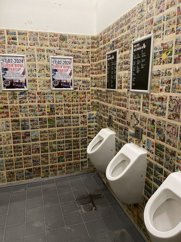Noch ein Tipp für Comic-Fans mit dringendem Bedürfnis: Die öffentliche Toilette im Werksviertel ist komplett mit Seiten aus Lustigen Taschenbüchern tapeziert.