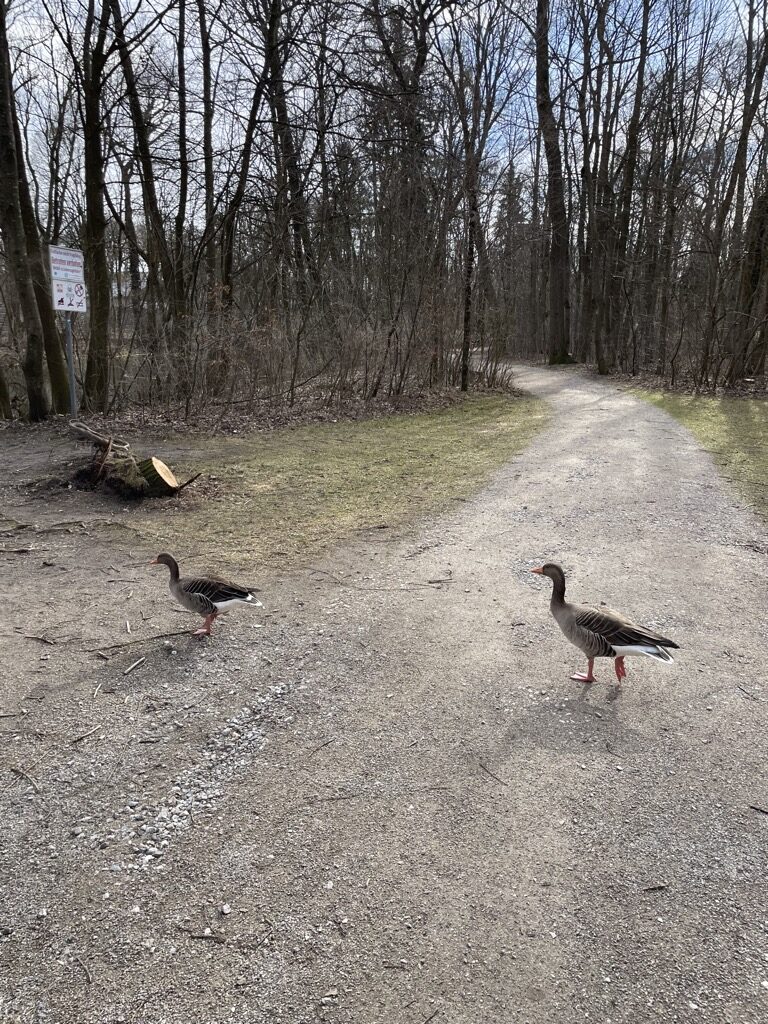 Auf der mittäglichen Laufrunde ist einiges Federvieh recht zutraulich und findet offenbar nichts wegrennenswertes an einem mittelalten, schwitzend-keuchenden Mann.