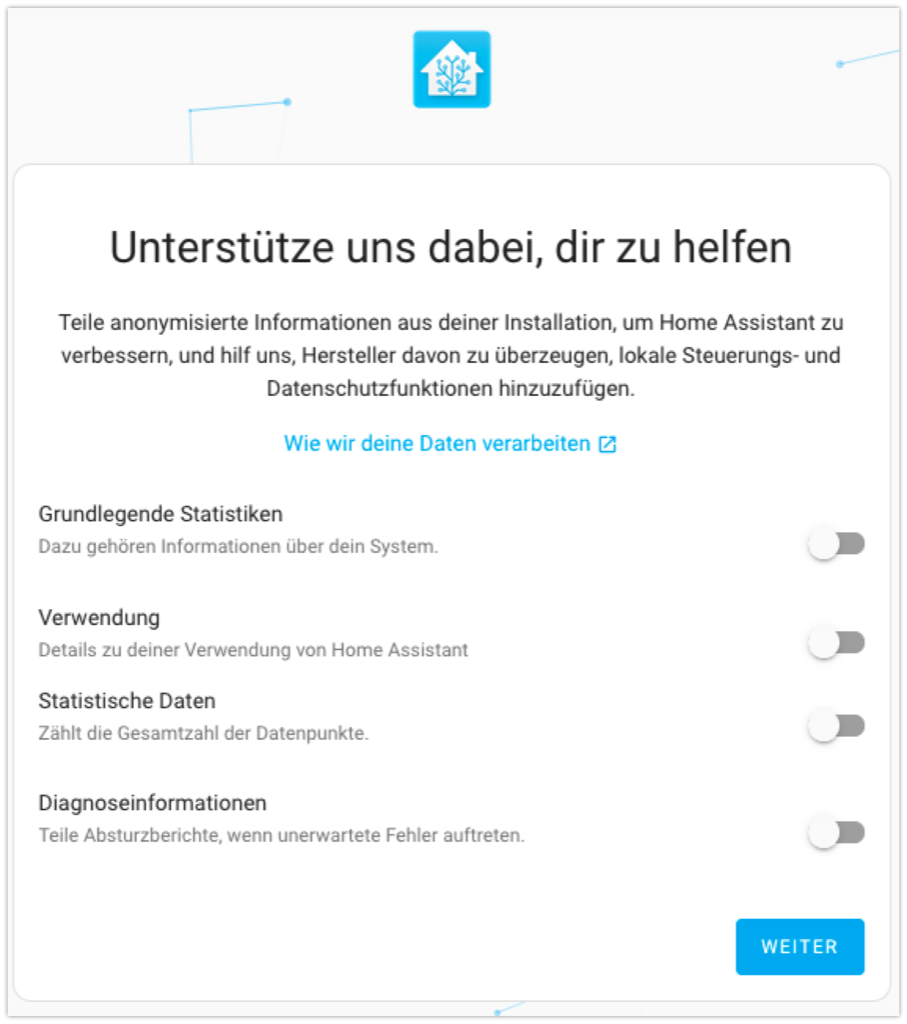 Wer mag, kann anonymisiert Daten an die Entwickler übermitteln. Ich lasse das erst mal deaktiviert.