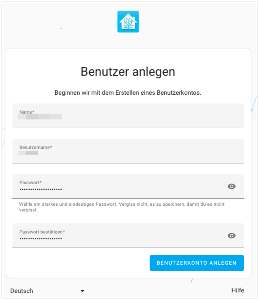 Als erstes muss man einen Benutzer anlegen. Starkes Passwort verwenden, denn das ist dann der Admin-User.