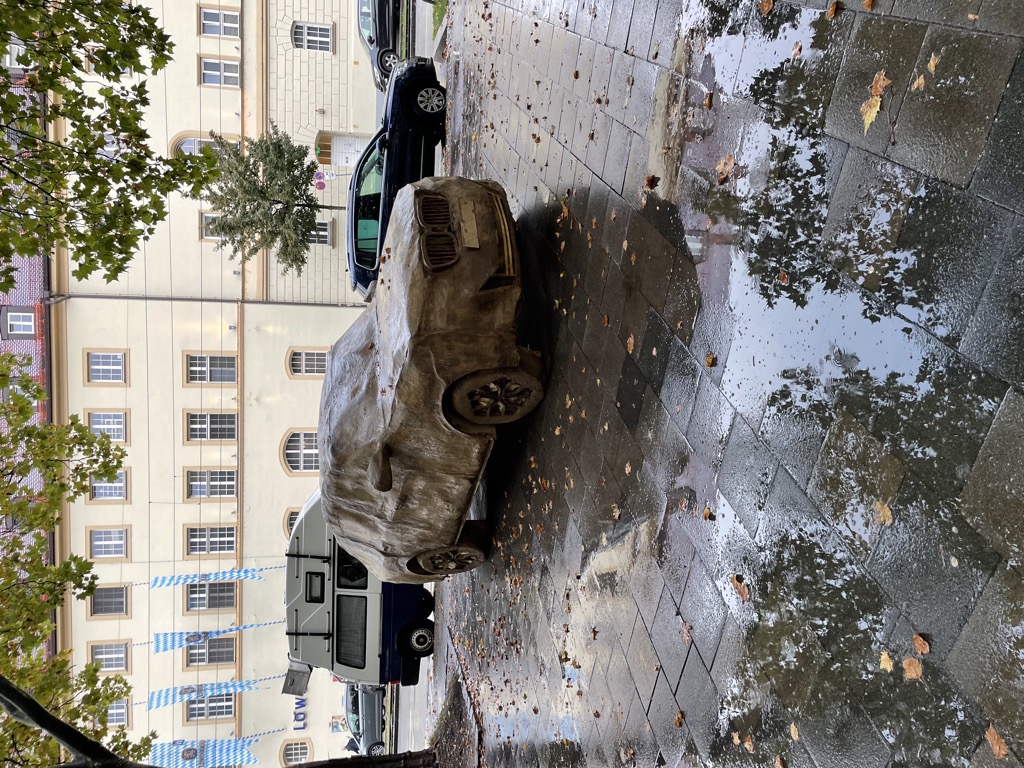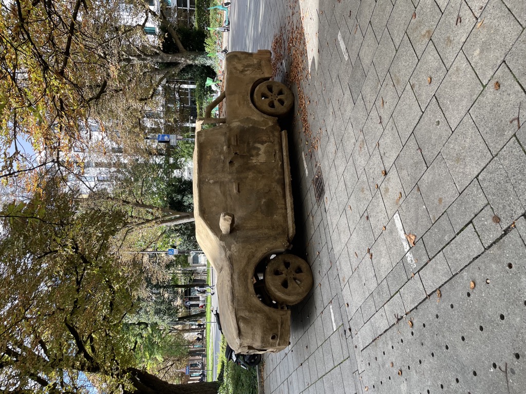 Die Künstlerin berichtet bei einer kleinen Podiumsrunde am 27. September im Kunstlabor2 Ähnliches. Leute machen sich Gedanken, welche Modelle sich unter dem Dreck verbergen (keins, echte SUVs wurden nur als Form genutzt und dann wieder entfernt), vergleichen mit ihrem eigenen Auto, erzählen, warum sie selber einen fahren oder warum nicht oder dass der da auf keinen Fall stehen bleiben kann, weil man den Platz hier regelmäßig nutzt, um Sachen auszuladen und man zur Not auch selbst Hand anlegen wird, um das Ding zu entfernen (alle drei stehen nicht auf Parkplätzen).