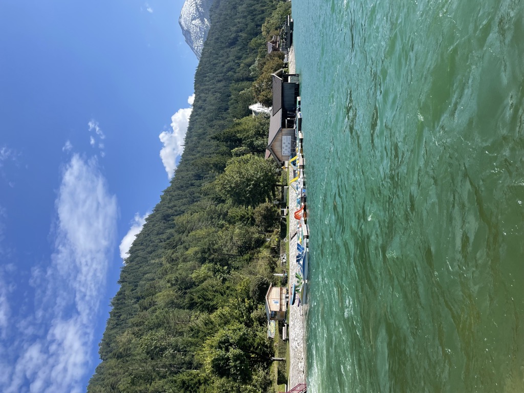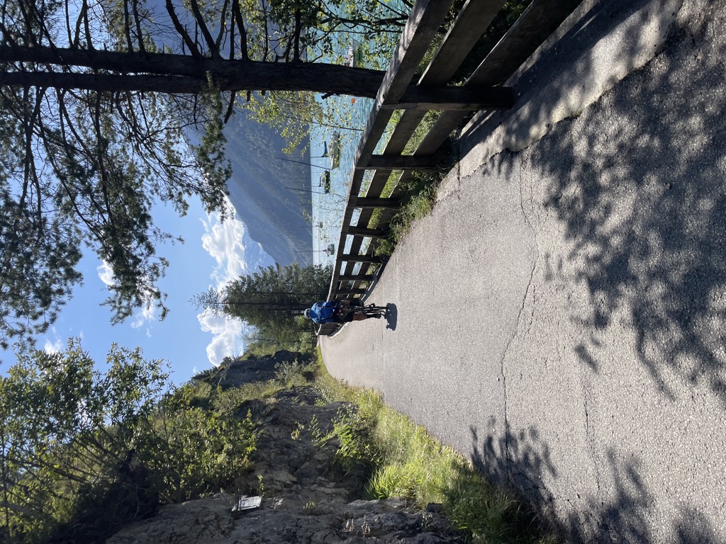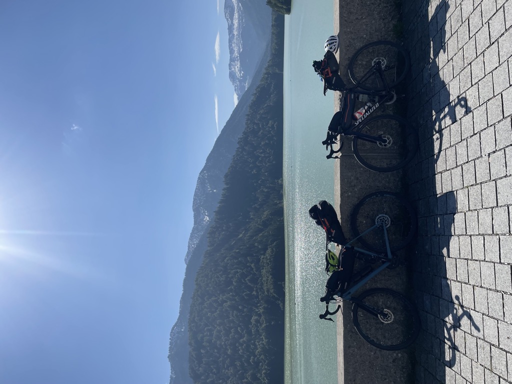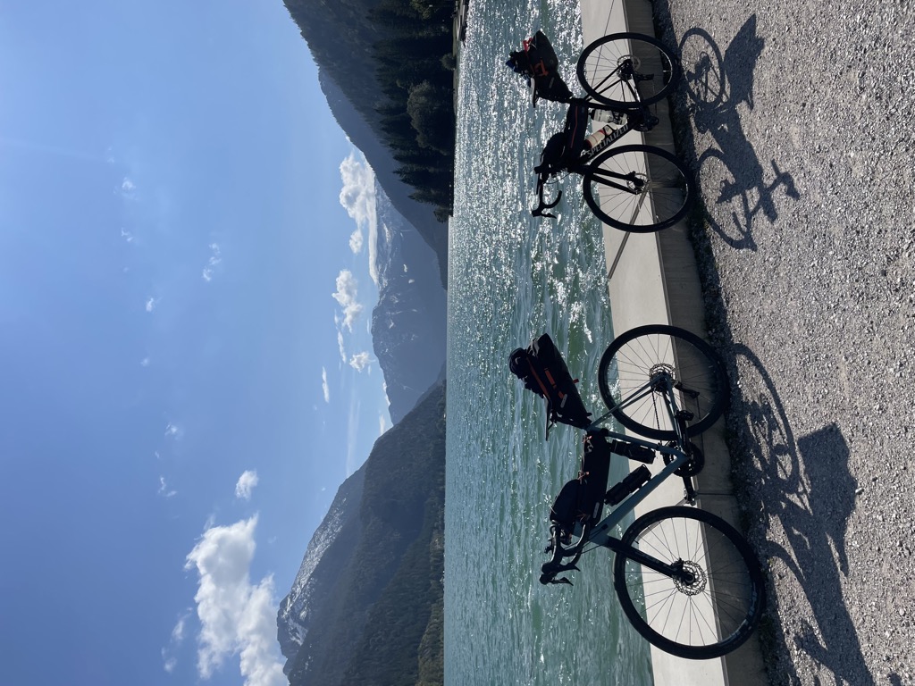 Freund Lars weiß aber zu berichten, dass die Passstraße steiler und vor allem reine Autostraße ist. Deshalb Variante 2.1: Über Bad Tölz und Lengries hoch zum Sylvensteinspeicher und vorn dort aus zum Achensee. Das erweist sich als gute Idee. Die längste Tagestour, die ich bisher gemacht habe, war die Bodenseeumrundung mit 130 Kilometern und keinerlei Steigung. Die 150 Kilometer und zusätzlich fast 1000 Höhenmeter flößen mir vorab ein bisschen Respekt ein. Aber die Steigung von Lenggries zum Sylvensteinspeicher ist wirklich sehr moderat und eher lang gezogen. Außerdem fast alles auf eigenem Radweg. Das bekommen wir gut hin. Direkt nach dem Achensee geht es dann runter ins Inntal. Und die Abfahrt ist tatsächlich genau so, wie sie auf dem Komoot-Höhenprofil aussieht. Die Bremsen rauchen. Die letzten 40 Kilometer durchs Inntal ziehen sich dann etwas kaugummihaft. Nach 10 Stunden erreichen wir Innsbruck.