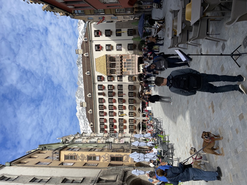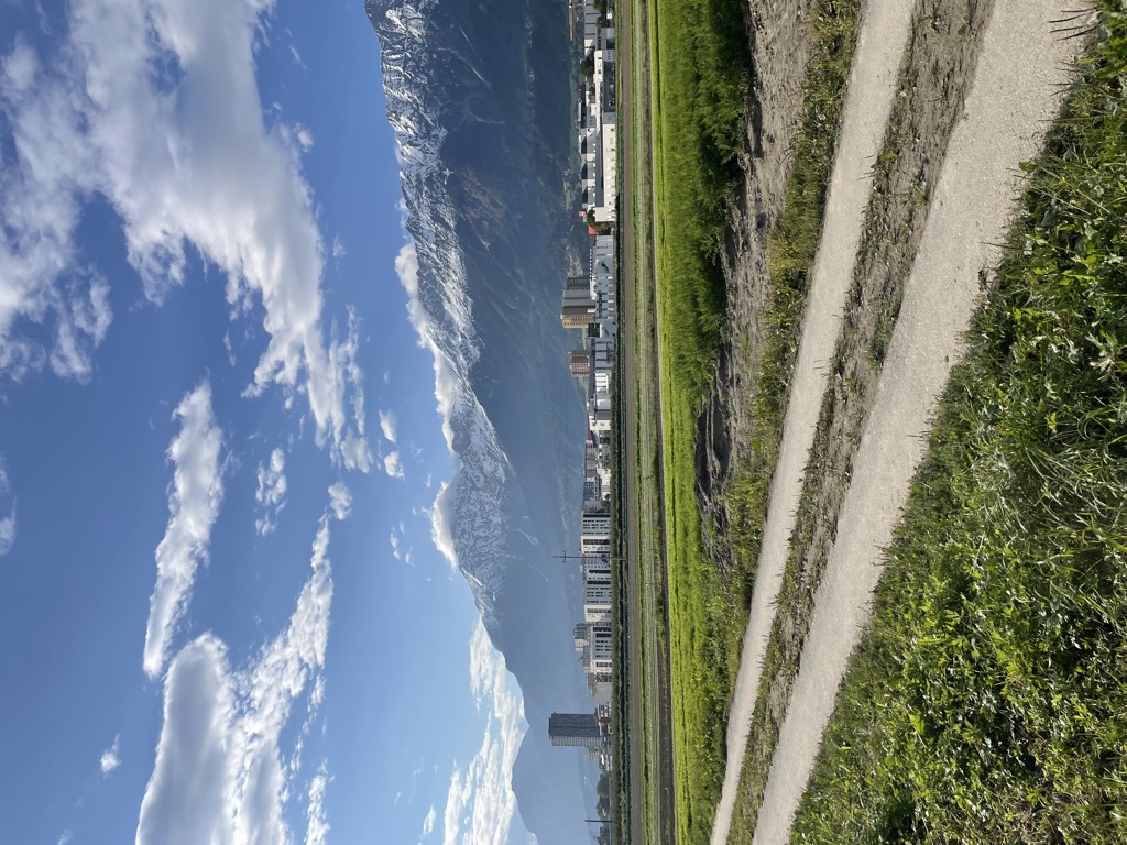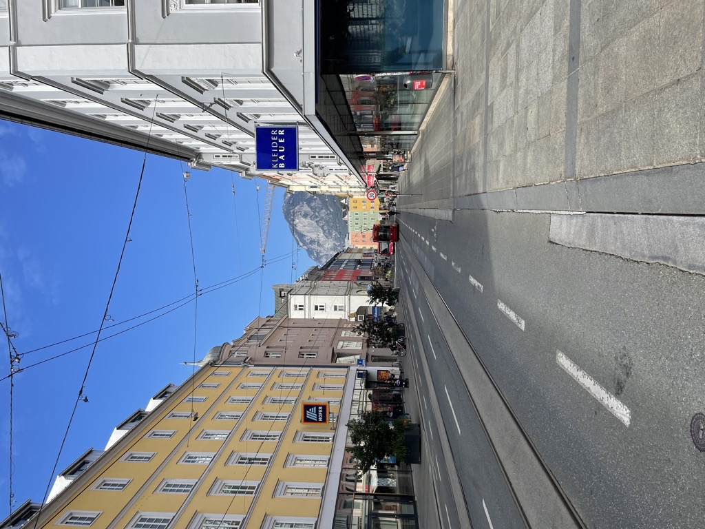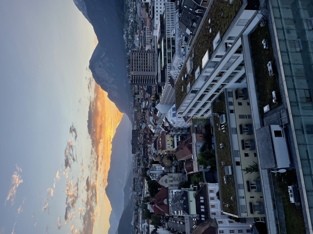 Ich wusste natürlich, dass Innsbruck in einem Tal in den Bergen liegt, was das aber bedeutet, wird mir erst jetzt klar: Egal wo man hinschaut, immer sind da schneebedeckte Berge. Genial.