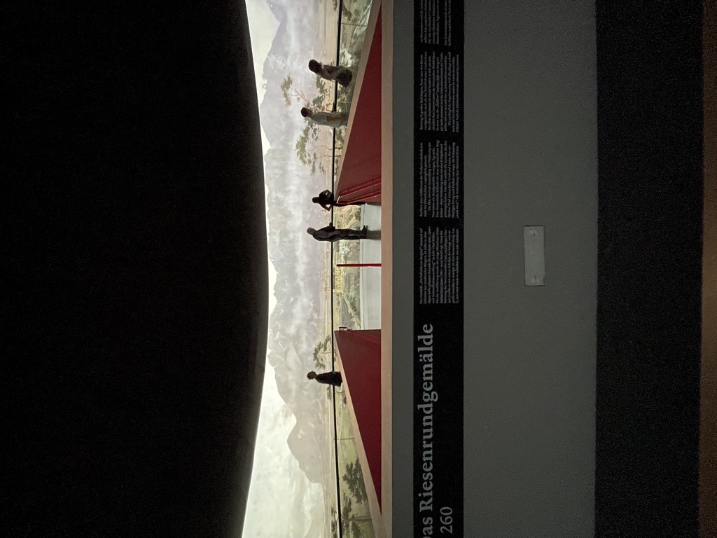 Wieder im Tal geht es zum Tirol-Panorama. Klingt langweilig, ist aber durchaus interessant. Panoramen waren früher mal eine kurze Zeit so was ähnliches wie Kino. Auf riesigen Rundumleinwänden wurden Geschichten gemalt und in extra dafür errichteten Gebäuden zur Schau gestellt. Hat sich aber nicht so lang gehalten, weil dann irgendwann Bewegtbild aufkam. Das Tirol-Panorama blieb erhalten und man hat dafür 2010 ein eigenes neues Gebäude errichtet. Das Bild zeigt den Kampf der lokalen Bauern gegen Bayern und Franzosen am Bergisel.